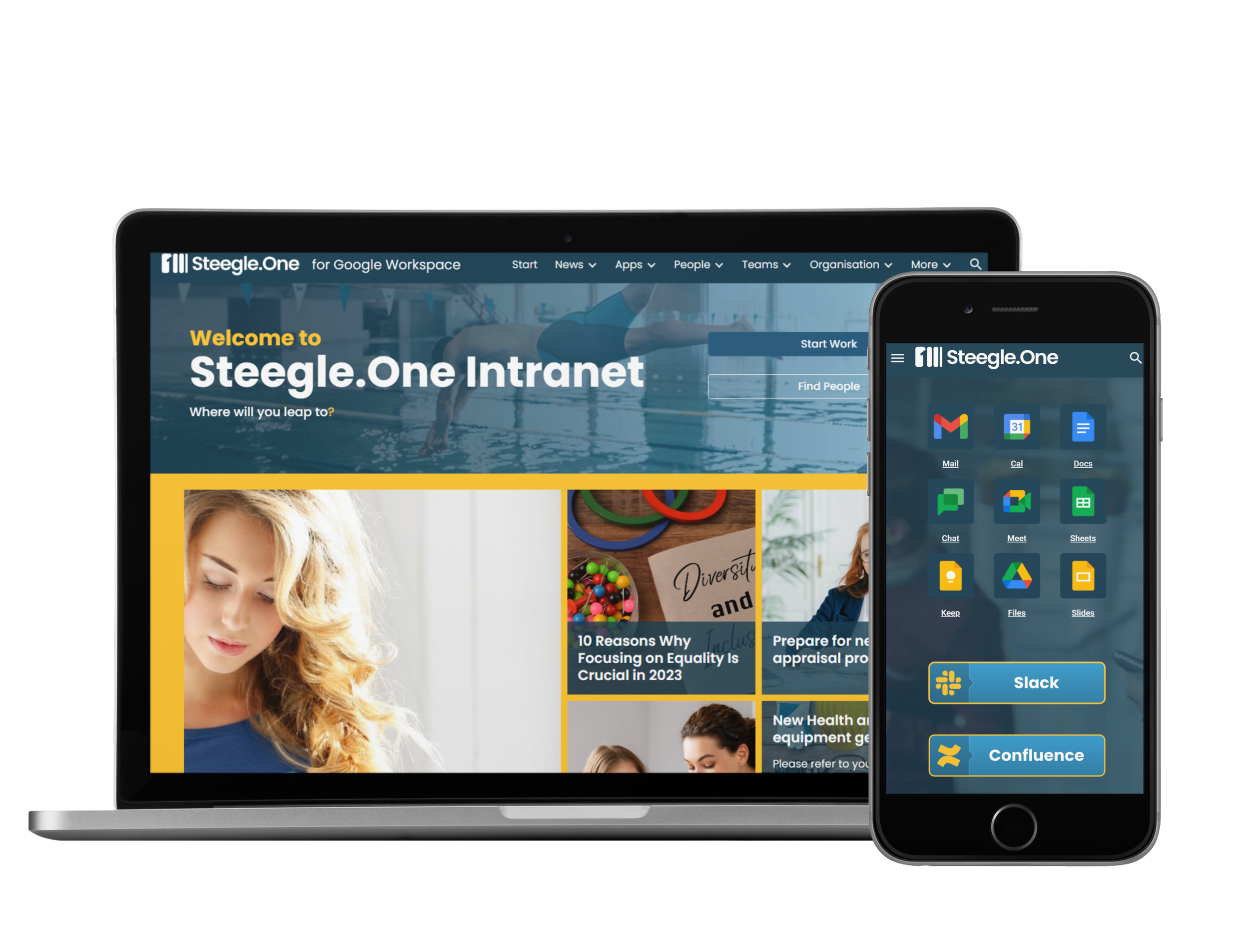 Steegle.One uses Google Sites, Google Drive, Google Chat, and Google Calendar. If your team already uses Google Workspace, they already know how to use the intranet. And beyond that, you also gain access to the latest leading AI innovations like Gemini, empowering smarter collaboration and productivity.