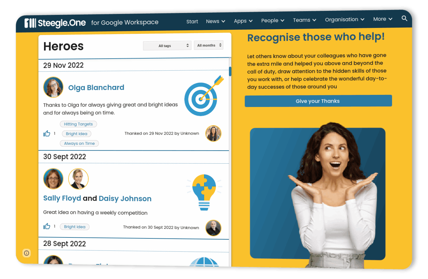 Meet Steegle.One – the only intranet built natively on Google Sites that keeps all your data, files, and conversations 100% within Google Workspace. Connect, collaborate, and celebraåte in the tools your teams already know – without extra log‑ins, data migrations, or third‑party servers.